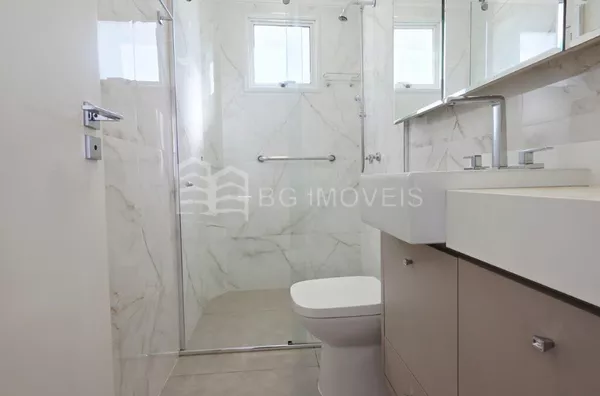 ✔️Banheiro com chuveiro a gás, armários e box de vidro temperado;