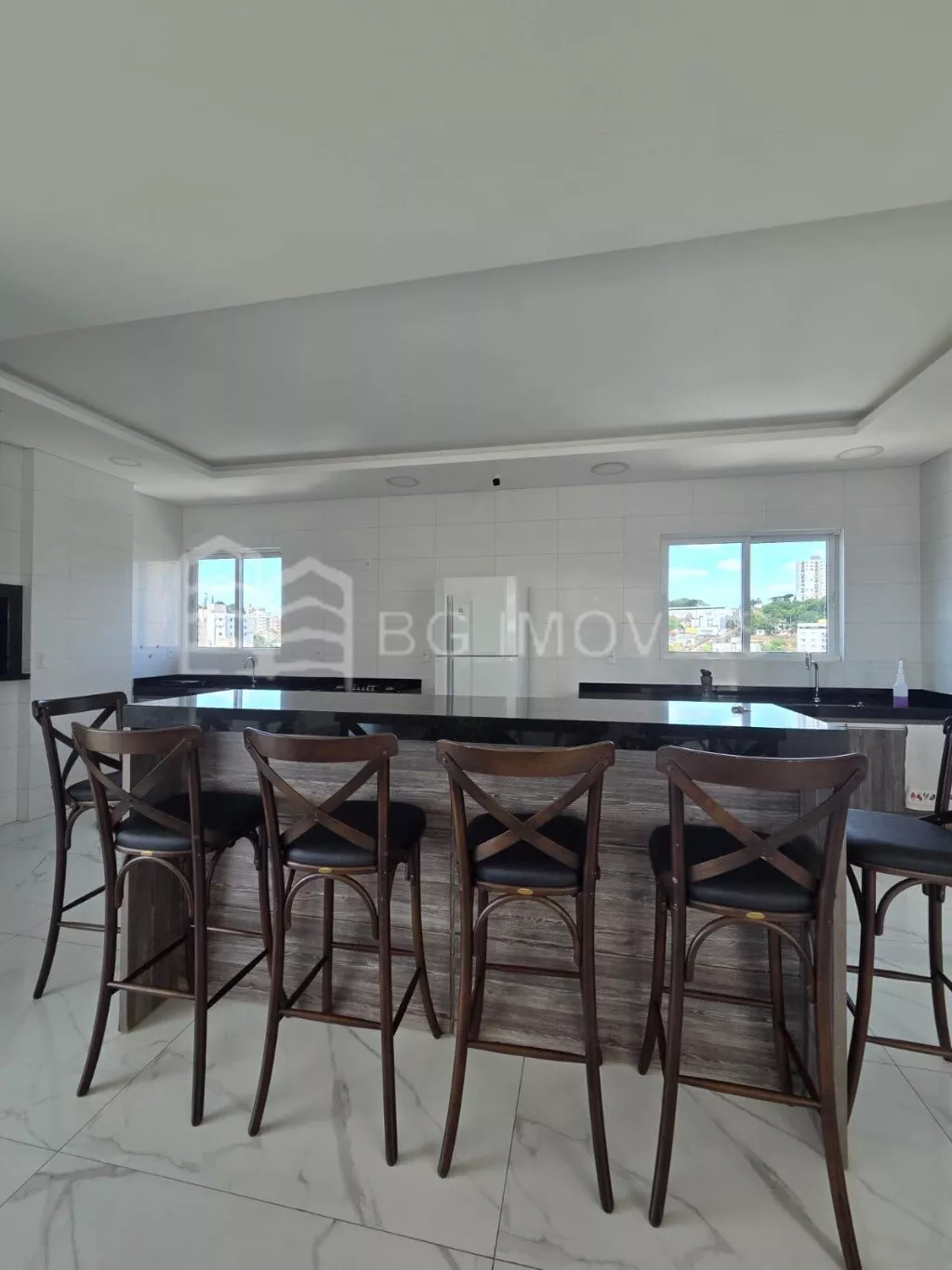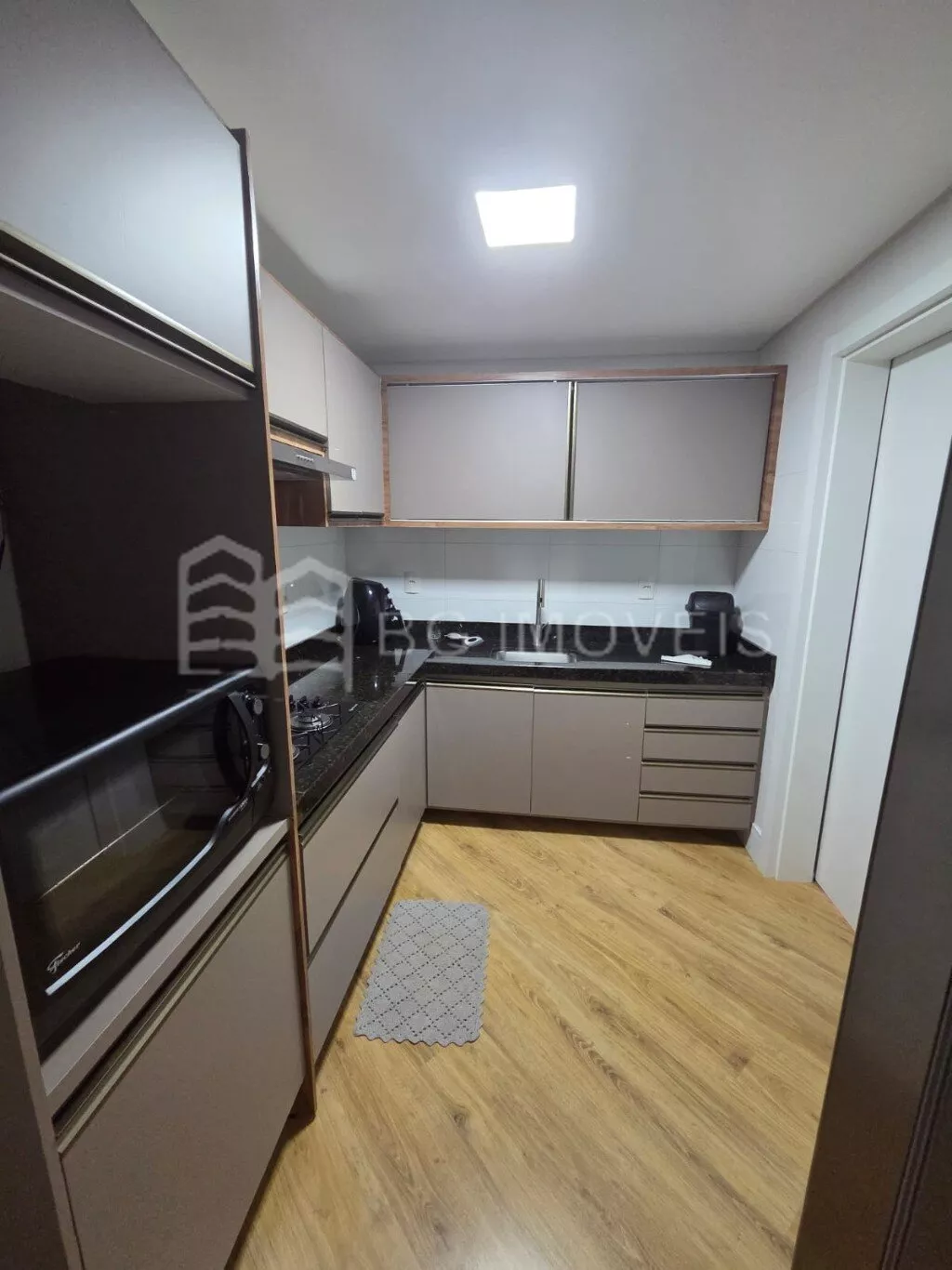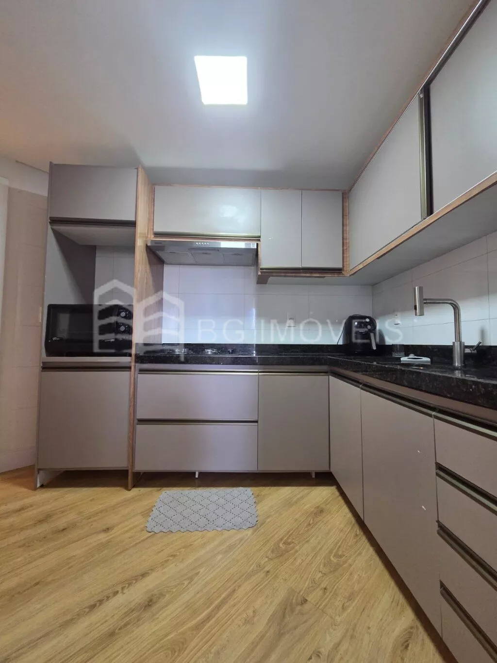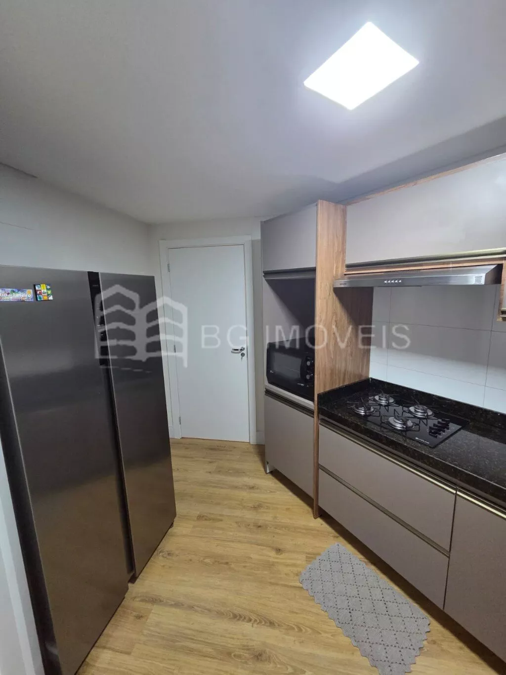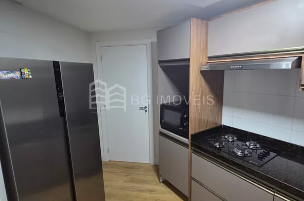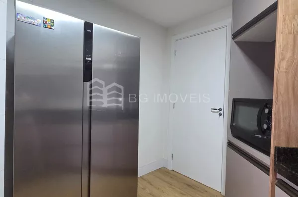 * Cozinha com pia e armários sob medida, geladeira side by side, cooktop e forno elétrico;