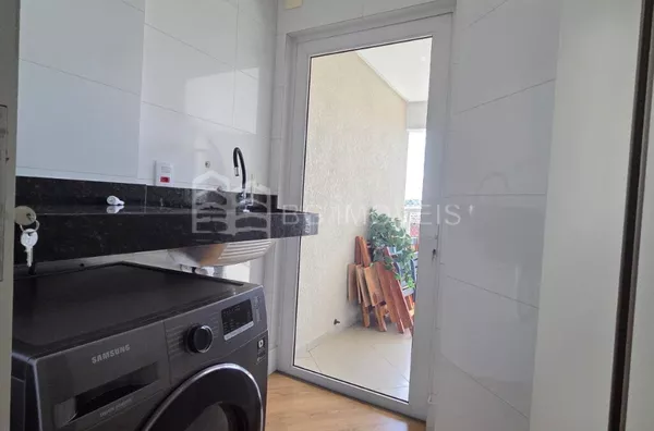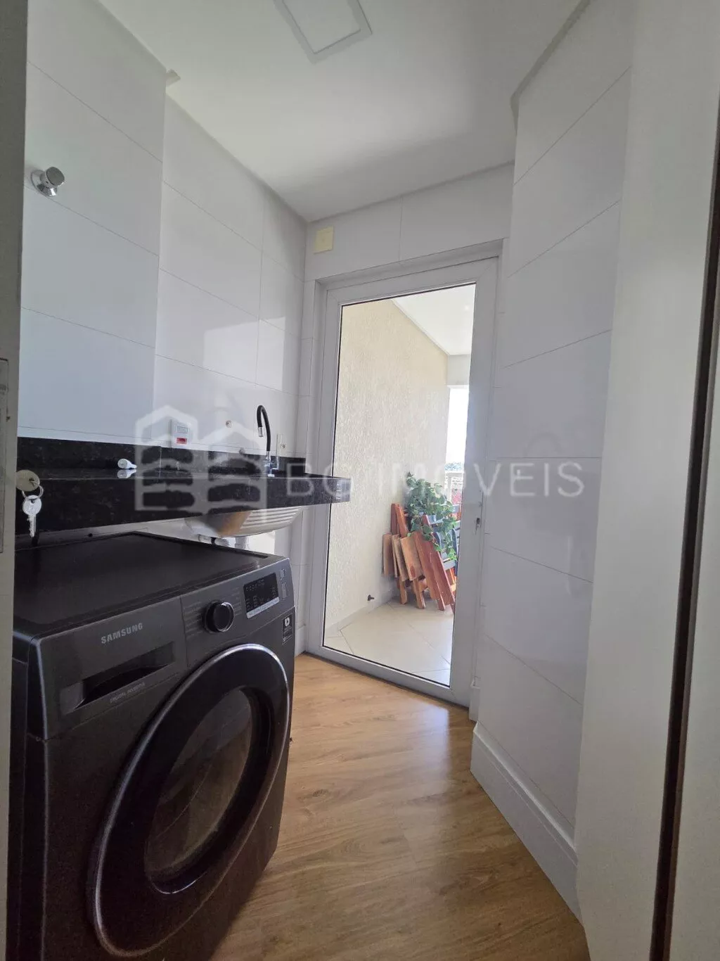 * Lavanderia com armário, bancada com tanque e máquina lava e seca inverter;