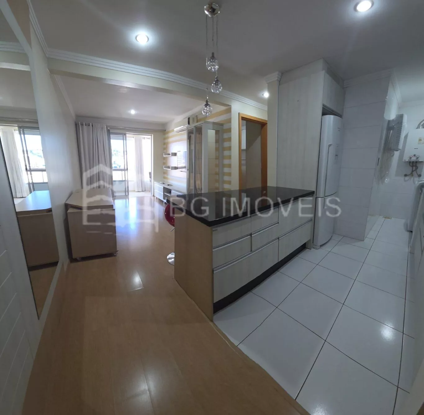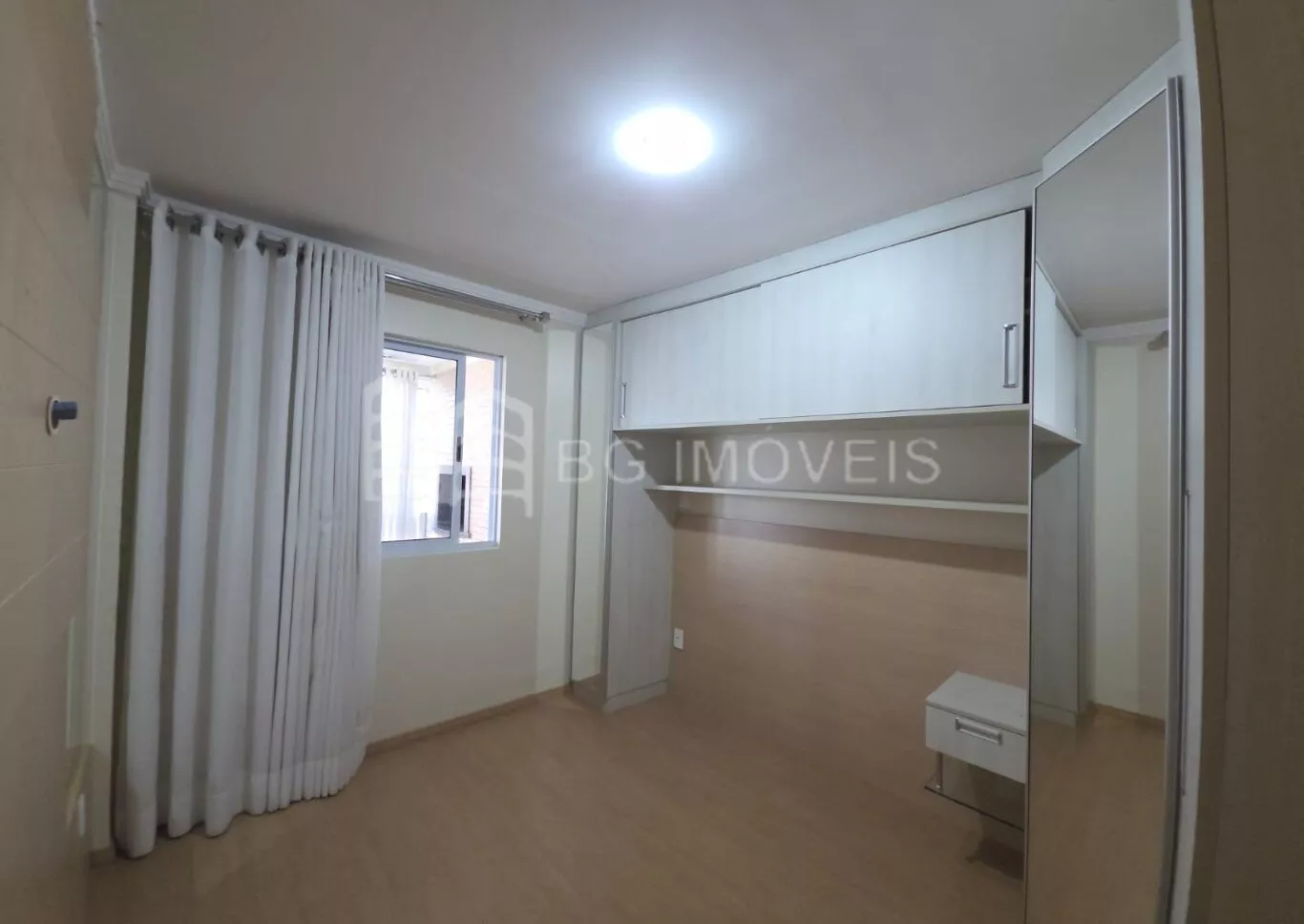 O imóvel possui cortinas em todos os ambientes, piso laminado e porcelanato.