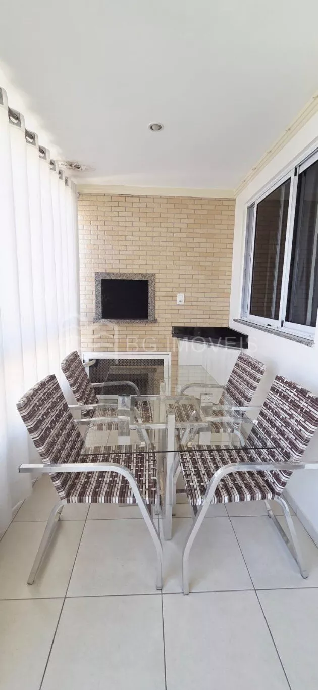 Sacada com churrasqueira fechada com Reike, mesa e 4 cadeiras, vista frontal para Rua Caramuru.